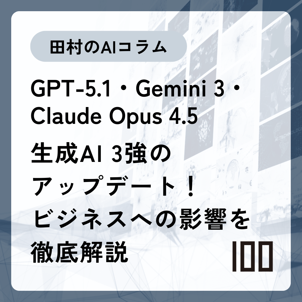 GPT-5.1・Gemini 3・Claude Opus 4.5|生成AI 3強のアップデート! ビジネスへの影響を徹底解説