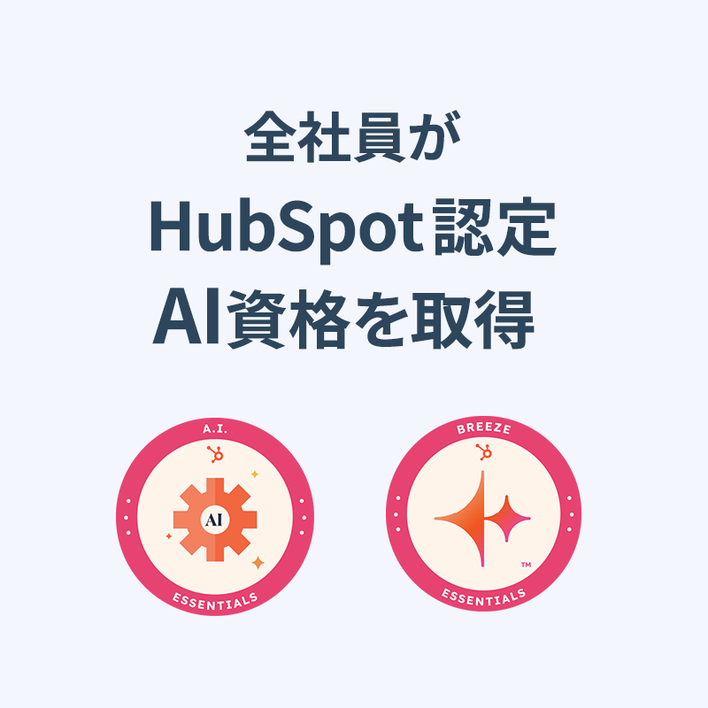 100では、AI関連資格を含む全46種類・計193資格を取得。今後もHubSpotパートナーとして、社員の知識と実践力を体系的に高めながら、AI活用を軸とした顧客支援を強化していきます。
