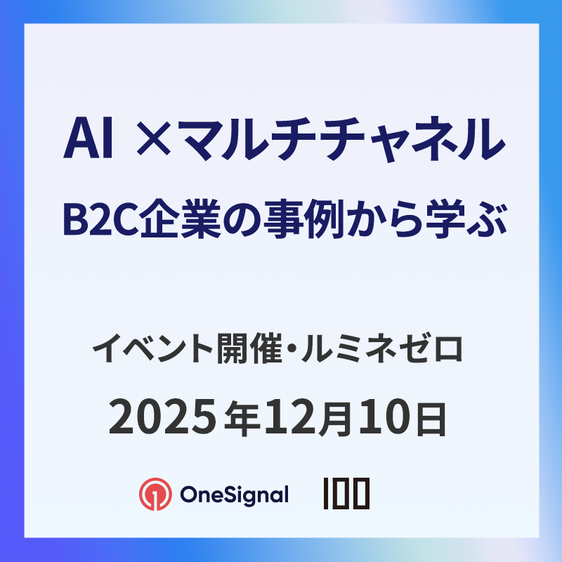 HubSpot Smart CRM™の導入・運用支援と、AIを活用した業務自動化支援を行う株式会社100(本社:東京都世田谷区、代表取締役:田村慶、以下「100」)は、OneSignalと共催で、AIとデータの活用によって変化する顧客コミュニケーションをテーマにしたイベント「AI×マルチチャネルの実践 〜B2C企業の事例から学ぶコミュニケーション最適化〜」を、2025年12月10日(水)に開催します。