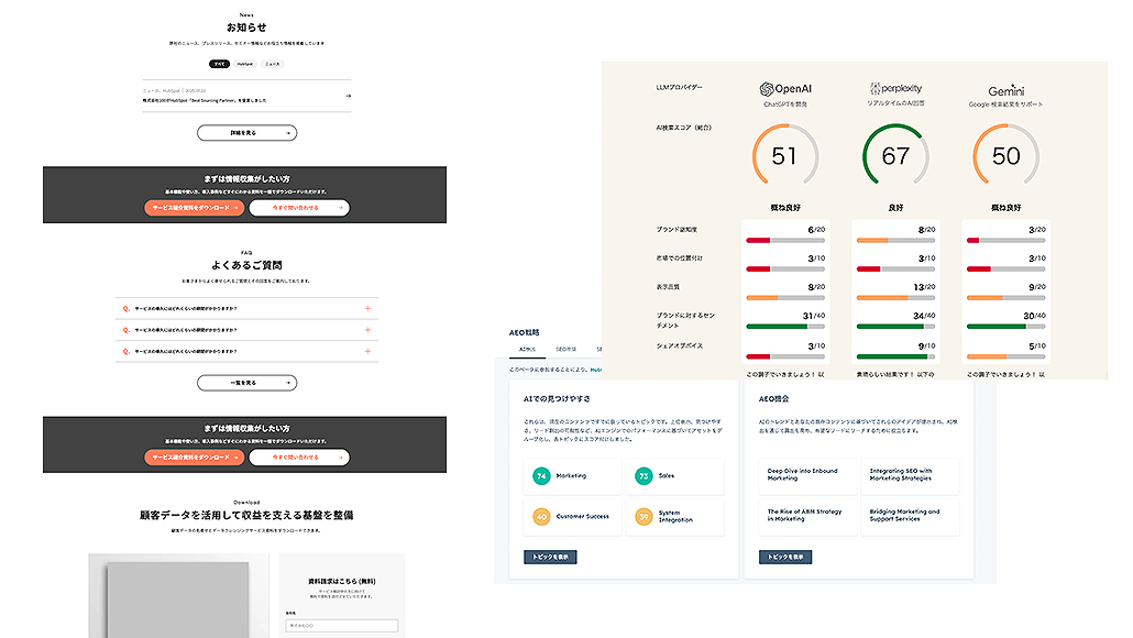 HubSpot INBOUND 2025で提唱されたAEO(AI Engine Optimization)は、顧客の購買行動の変化に対応する概念です。トラフィック総量は減少傾向にあるものの、AIを経由した顧客は購買意欲が高く、コンバージョン率が3倍というデータも示されています。この新しい集客構造の変化に対応するため、AEOにも対応したテンプレートを提供します。構造化データなどの技術的要素を標準で組み込み、AI時代の集客に適合した競争優位性の高いウェブサイト基盤をすぐに活用することが可能です。