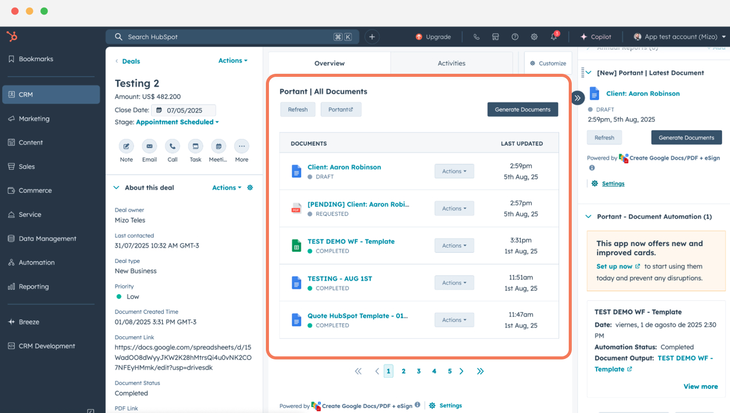 Portantは、 HubSpotとGoogle Docsを連携させ、見積書、提案書、契約書、請求書などの営業ドキュメントを自動生成するツールで、チームが管理作業に費やす時間を削減し、業務効率を向上させます。